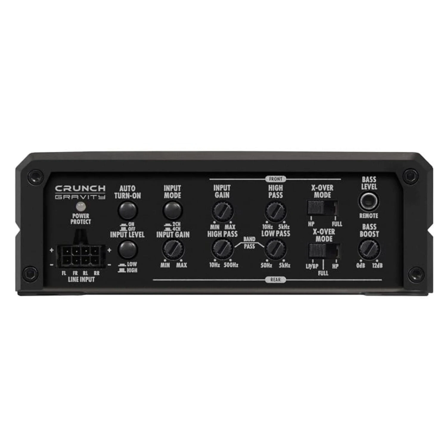 Dzięki selektorowi Input Mode 2CH/4CH, urządzenie z łatwością dopasowuje się do różnorodnych systemów audio – od prostych po rozbudowane instalacje wielokanałowe. Wzmacniacz wyposażono także w wejścia RCA, wejścia High Level z EPS®, funkcję Auto Turn-On oraz pilot do regulacji poziomu basu, który pozwala precyzyjnie kontrolować niskie tony z kokpitu.