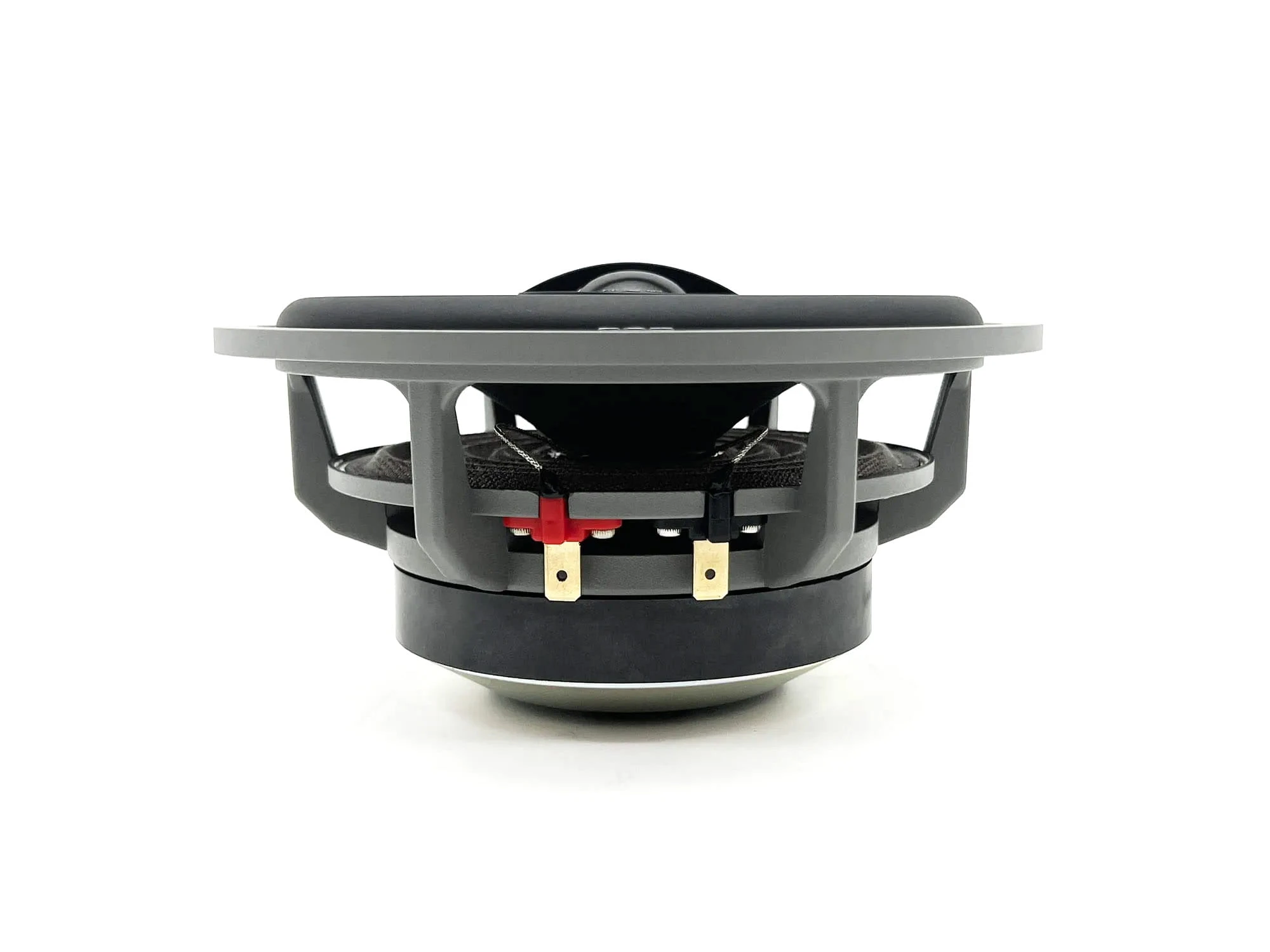 Model 4.6C to zaawansowany głośnik współosiowy 6,5”, w którym zastosowano precyzyjnie obrabiany CNC układ magnetyczny z niskowęglowej stali oraz potężny magnes ferrytowy Y35 zoptymalizowany symulacją FEA. Aluminiowy, odlewany kosz zapewnia maksymalną sztywność przy minimalnym oporze powietrza, a lekka cewka aluminiowa z miedzianym płaszczem gwarantuje wysoką dynamikę i skuteczne chłodzenie. Jedwabna kopułka tweetera o wysokim module sprężystości odpowiada za gładkie, detaliczne wysokie tony, natomiast membrana z długowłóknistej celulozy zapewnia naturalne i kontrolowane brzmienie średnich i niskich częstotliwości.