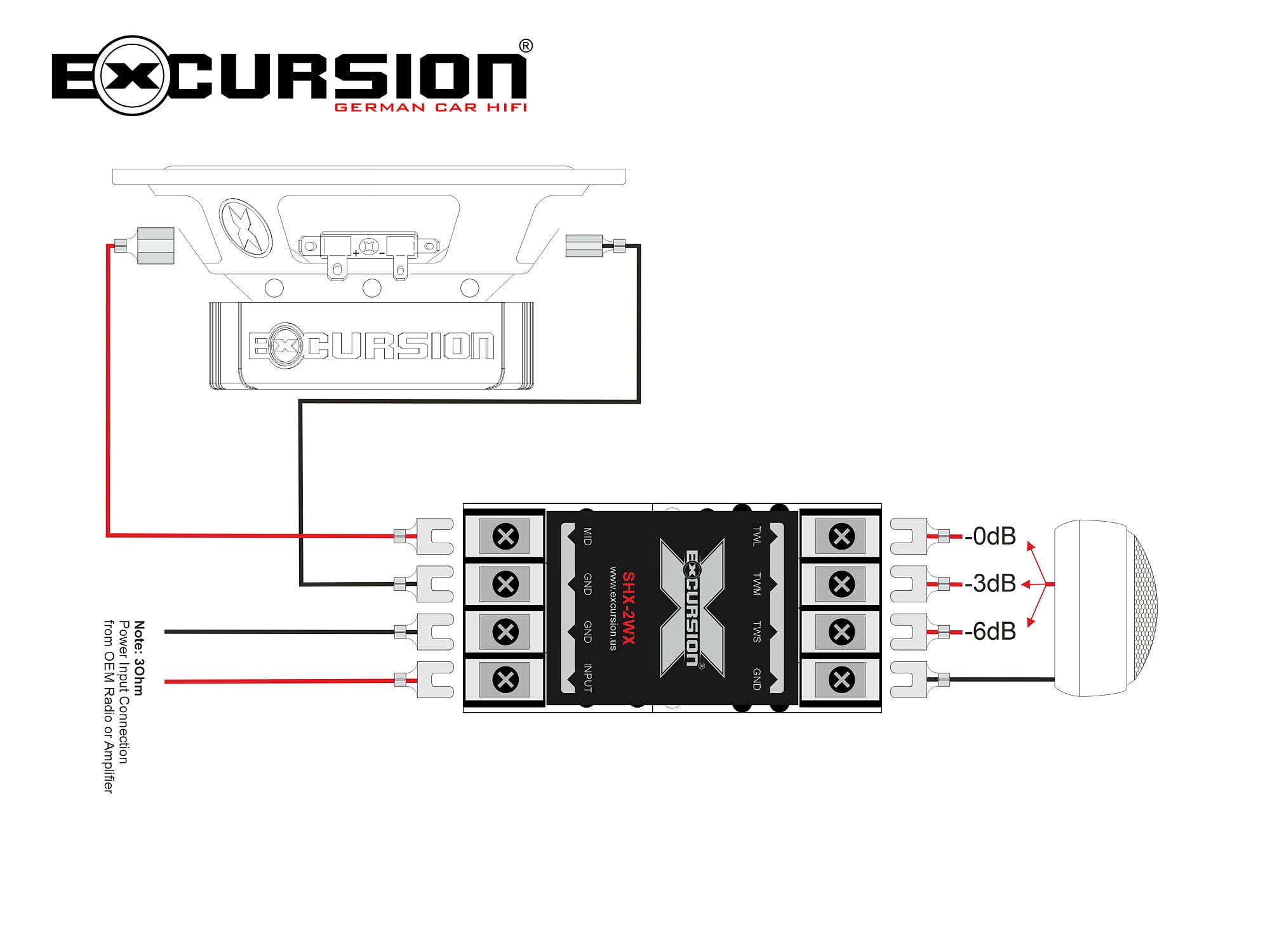 EXCURSION to niemiecka marka specjalizująca się w komponentach car-audio o wysokiej wydajności. Głośniki, wzmacniacze oraz akcesoria projektowane są z myślą o entuzjastach mocnego, dynamicznego dźwięku. Produkty EXCURSION cenione są za świetny stosunek jakości do ceny, wysoką niezawodność i bezkompromisowe podejście do detali konstrukcyjnych.