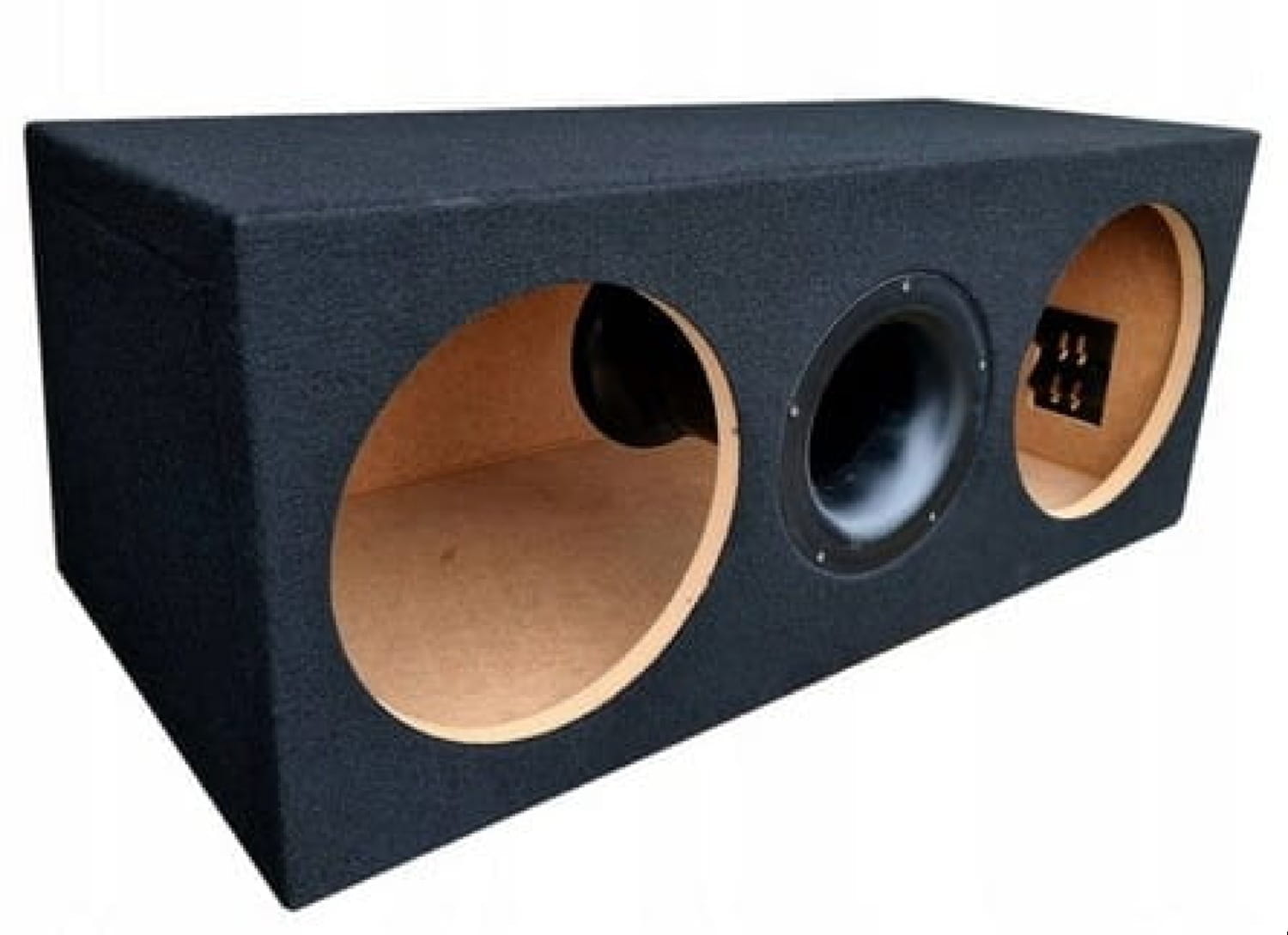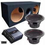 Obudowa z MDF 18 mm, tkanina w kolorze czarnym, precyzyjnie dopasowana do parametrów subwooferów.