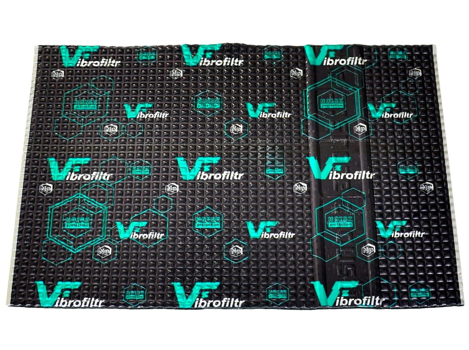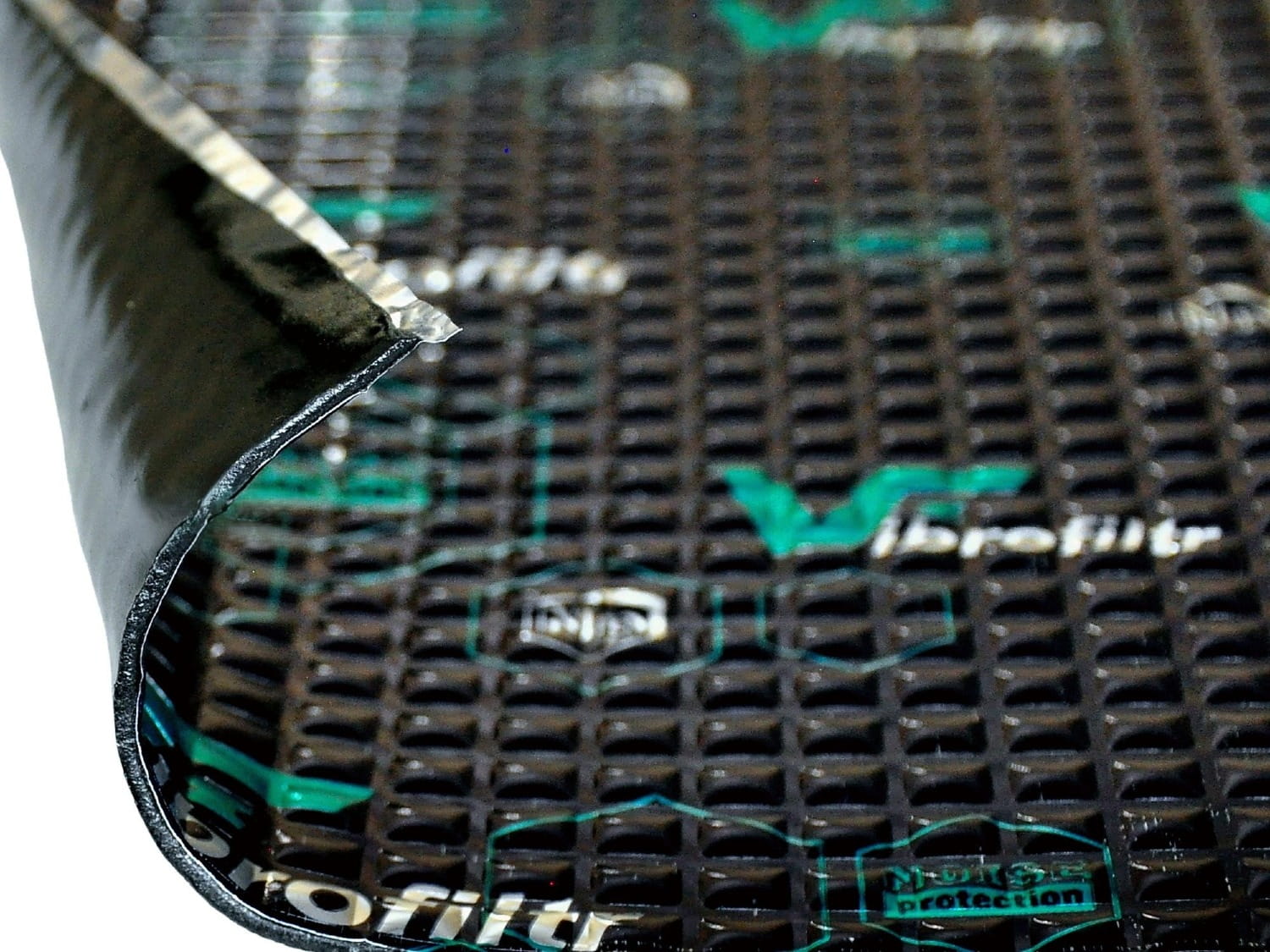 Vibrofiltr PRO 3.0 to wielowarstwowa mata oparta na nowoczesnym kompozycie polimerowo-butylowym, wzmocniona grubą, tłoczoną folią aluminiową 100 µm. Głębokie, kwadratowe przetłoczenia zwiększają elastyczność, ułatwiają montaż na mocno profilowanych powierzchniach oraz dodatkowo poprawiają skuteczność tłumienia.